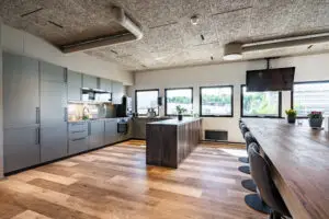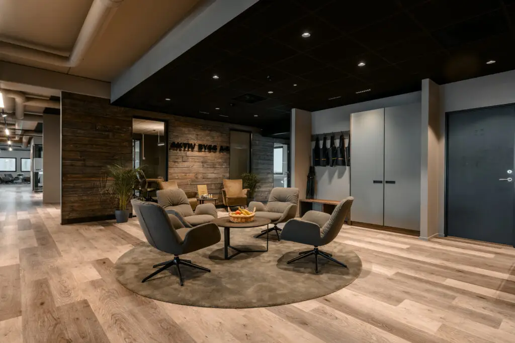 Tidligere i år flyttet Aktiv Bygg inn på det nye hovedkontoret, Ulvenveien 92C i Oslo. Som totalentreprenør gjennomførte vi rehabiliteringen selv, og prosjektet ga oss en verdifull mulighet til å utvikle en moderne og funksjonell arbeidsplass som er godt tilpasset vår egen drift. Bærekraftig rehabilitering har vært en gjennomgående prioritet, og vi har lagt vekt på gjenbruk og ombruk av materialer og teknikk.
