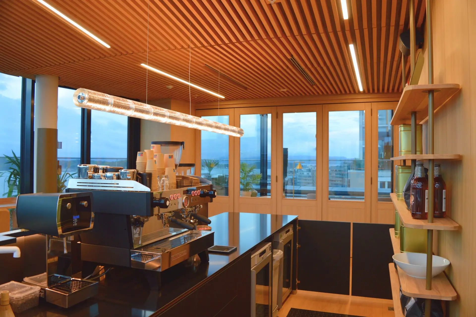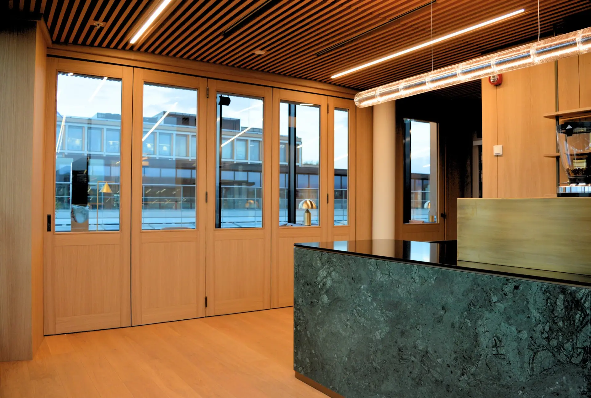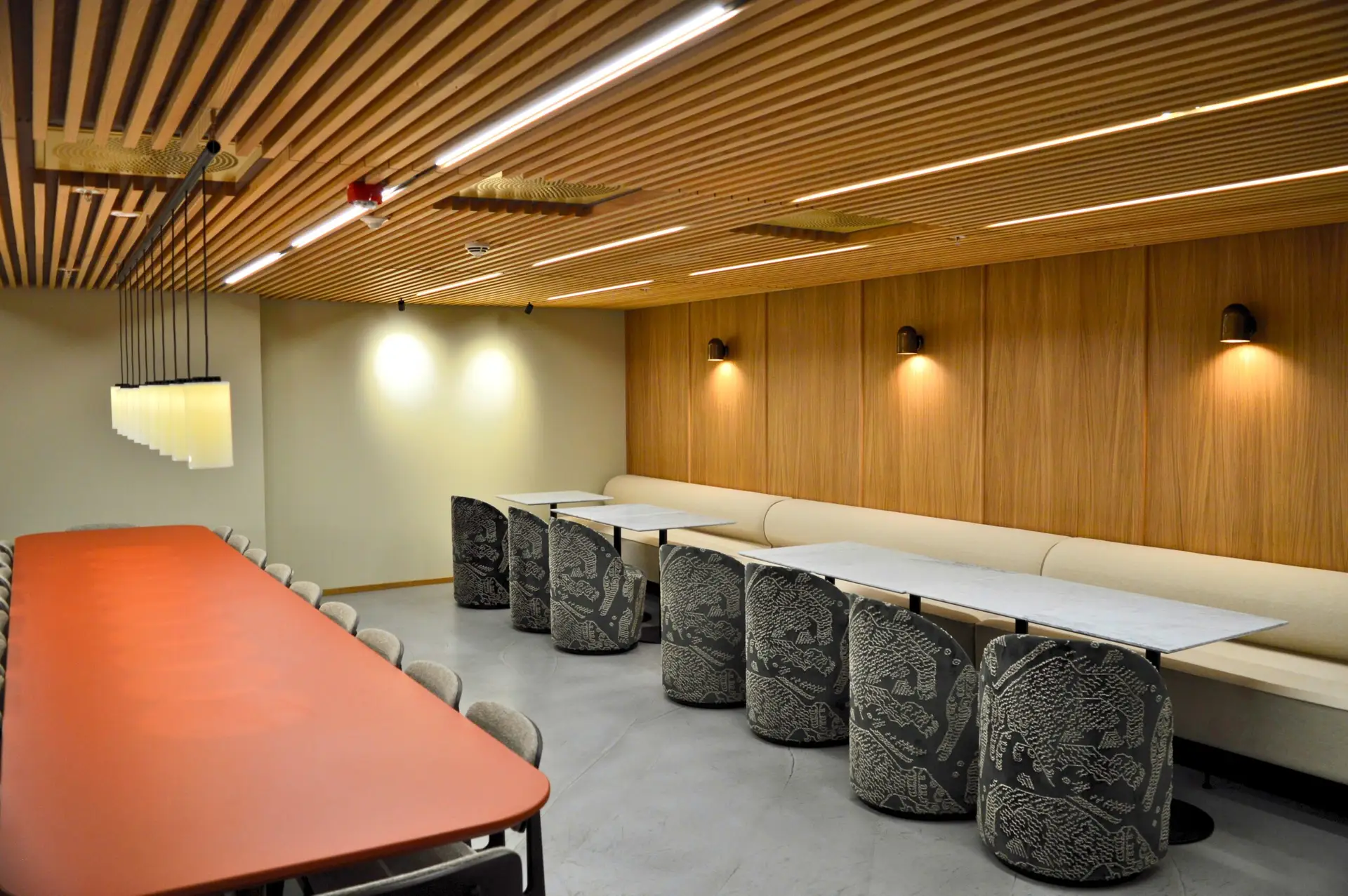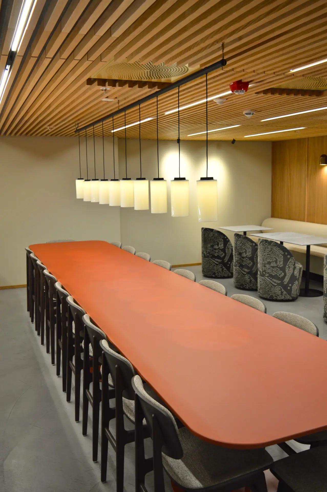 • Privat kantine, Plan U2: Etablering av en privat kantine med spesialtilpassede løsninger, inkludert fliser importert fra Japan og lamper fra New Zealand. Resultatet ble et raffinert og gjennomført uttrykk, med sømløs integrering av funksjon og design.