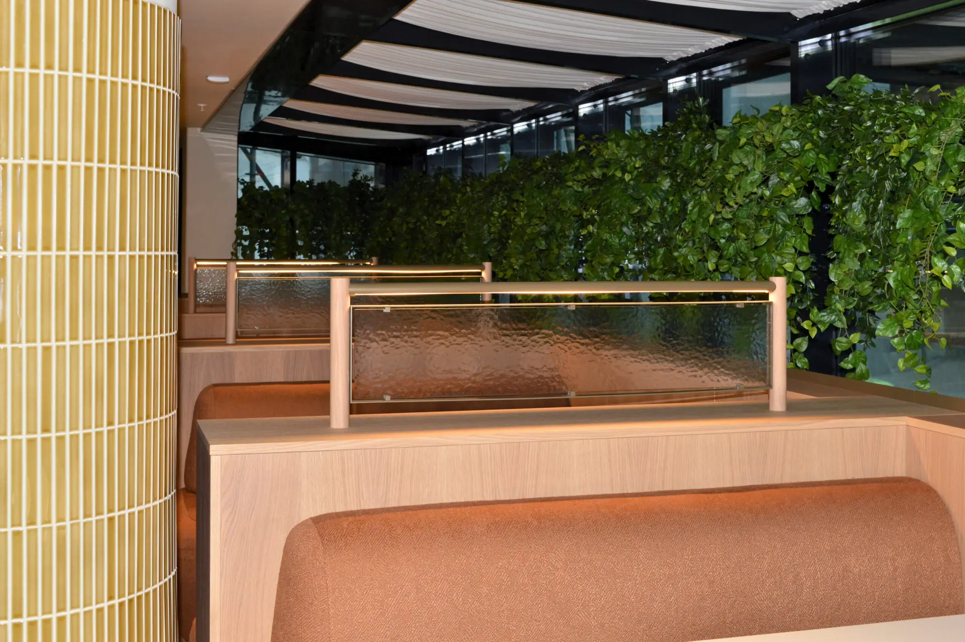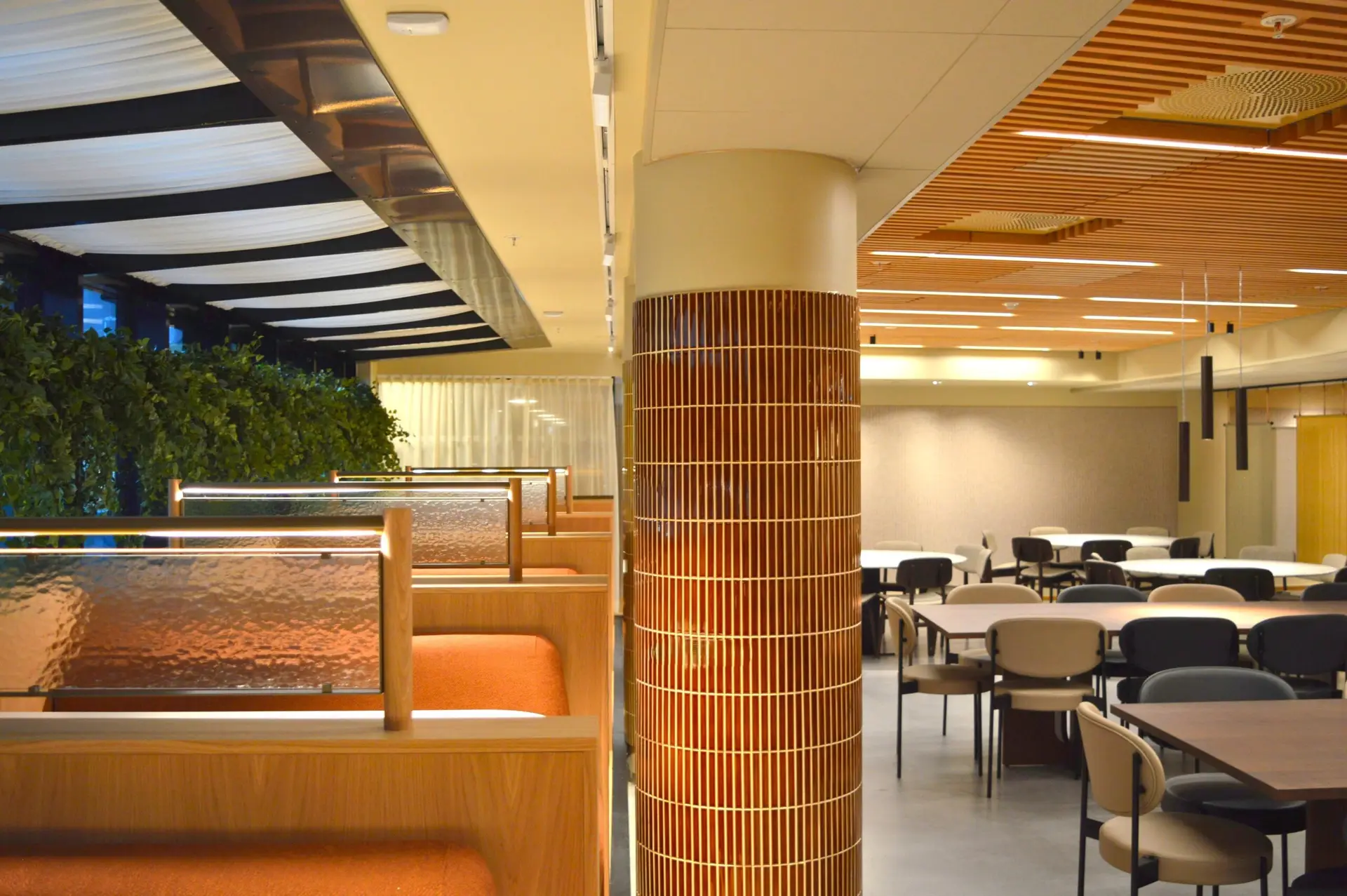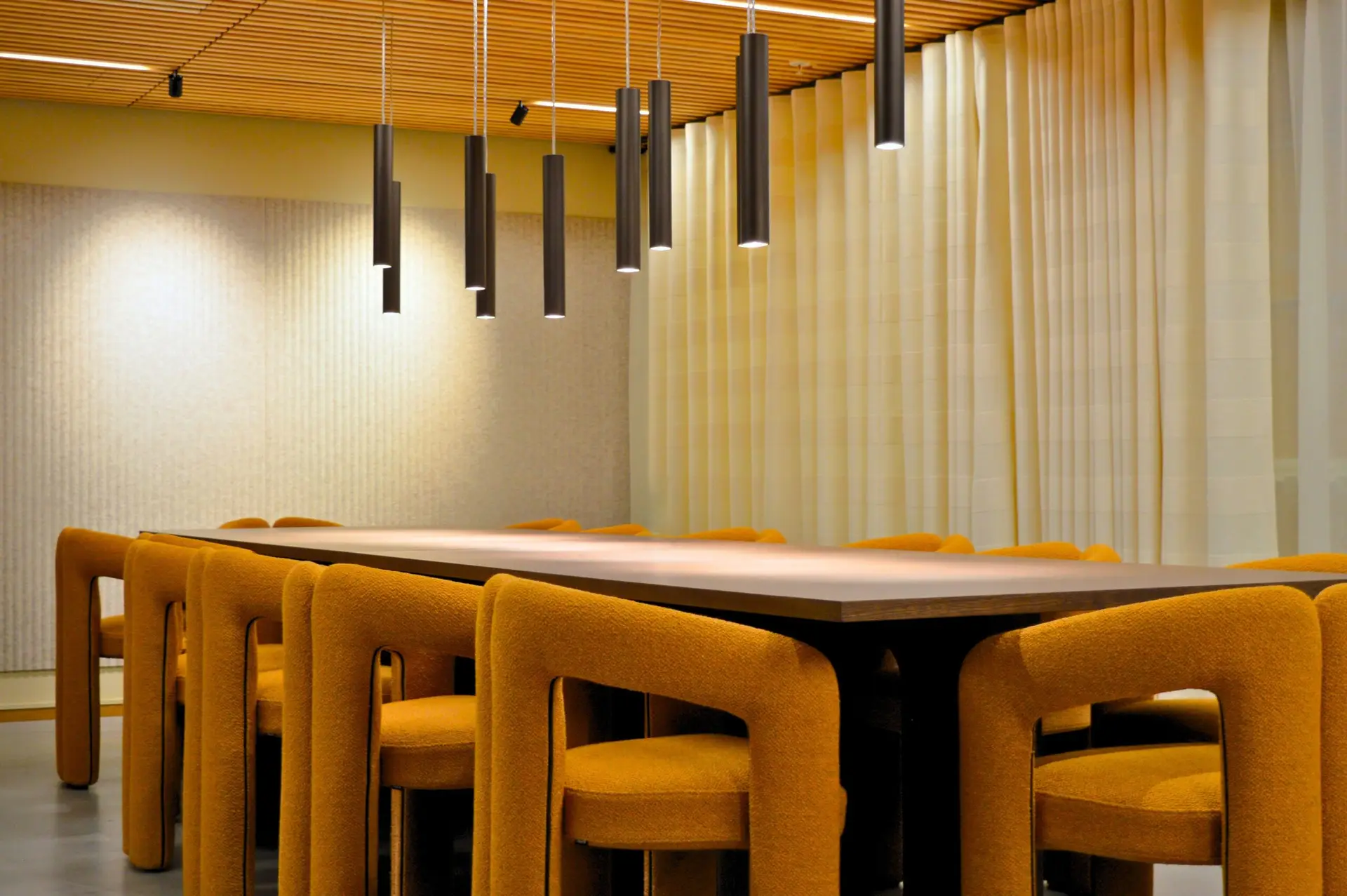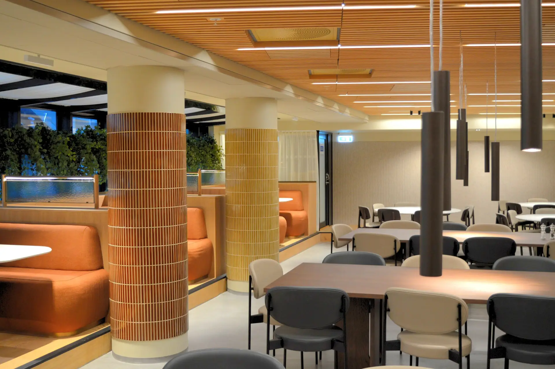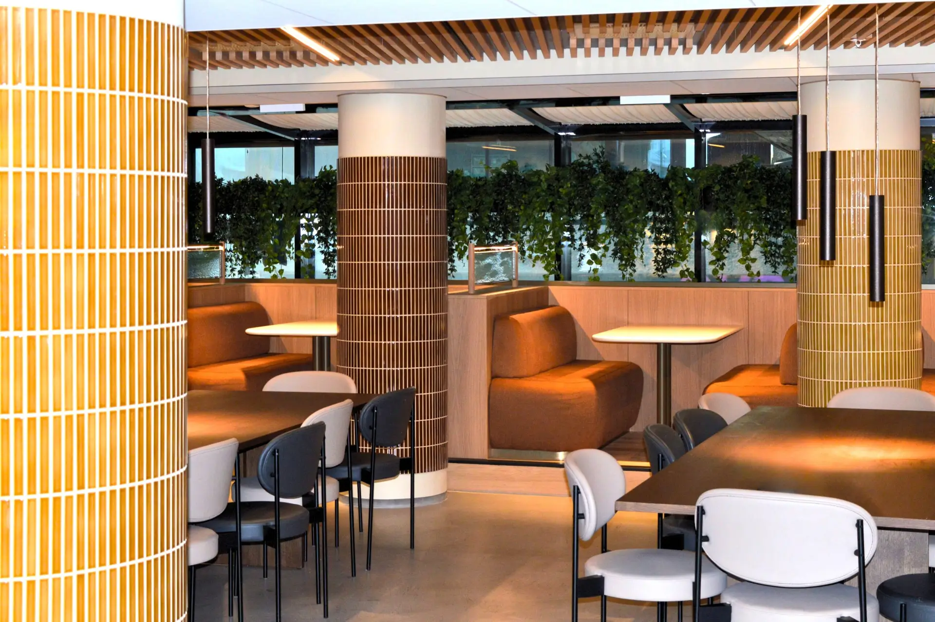 • Privat kantine, Plan U2: Etablering av en privat kantine med spesialtilpassede løsninger, inkludert fliser importert fra Japan og lamper fra New Zealand. Resultatet ble et raffinert og gjennomført uttrykk, med sømløs integrering av funksjon og design.