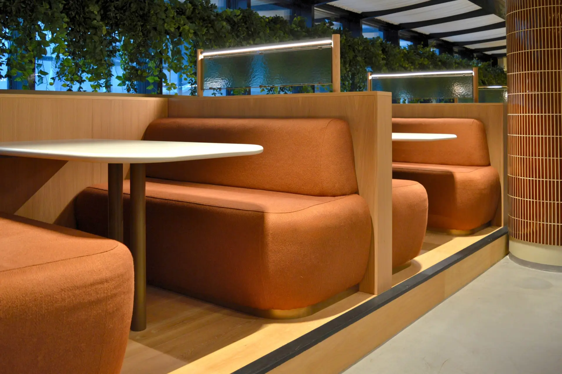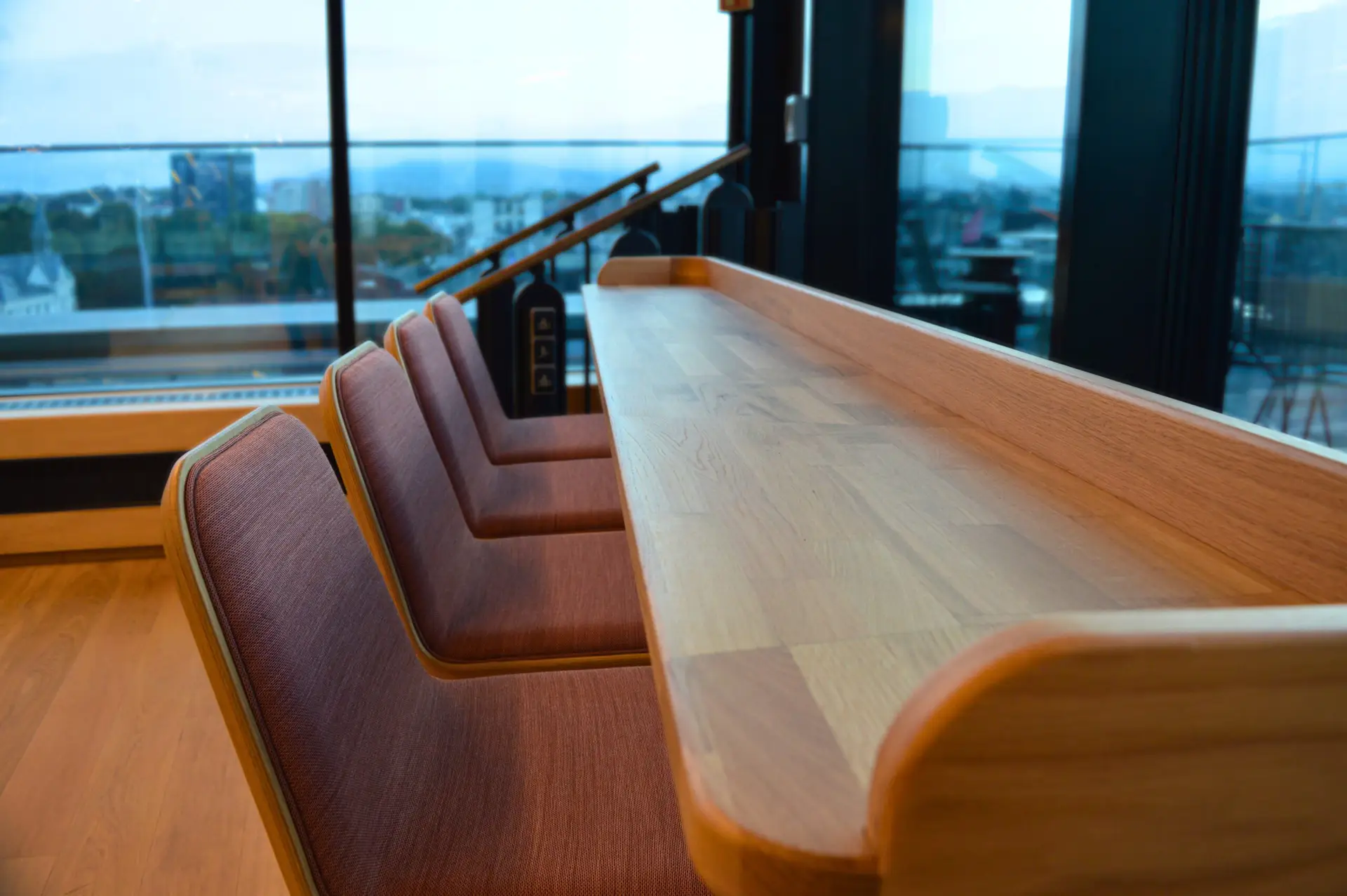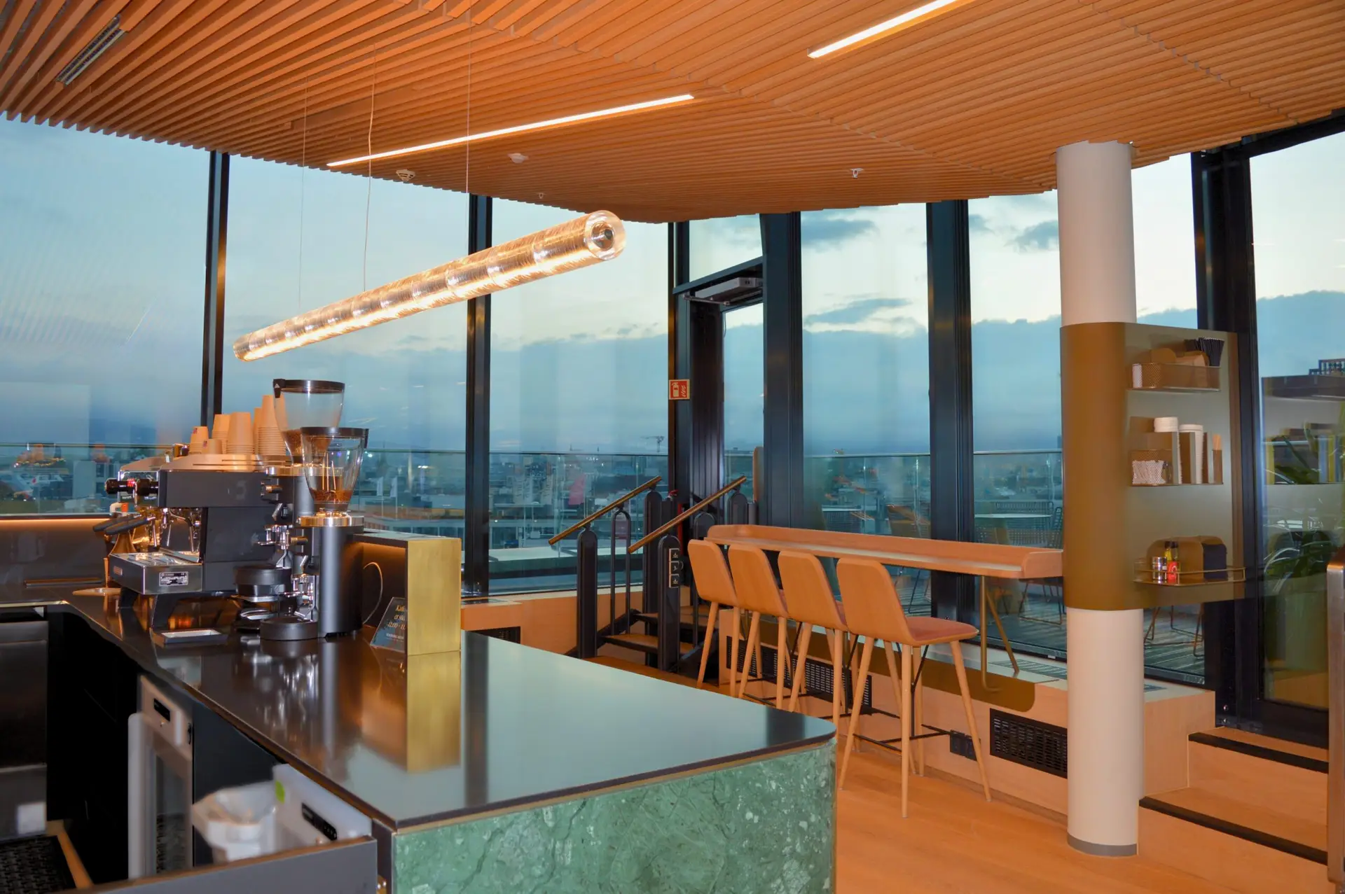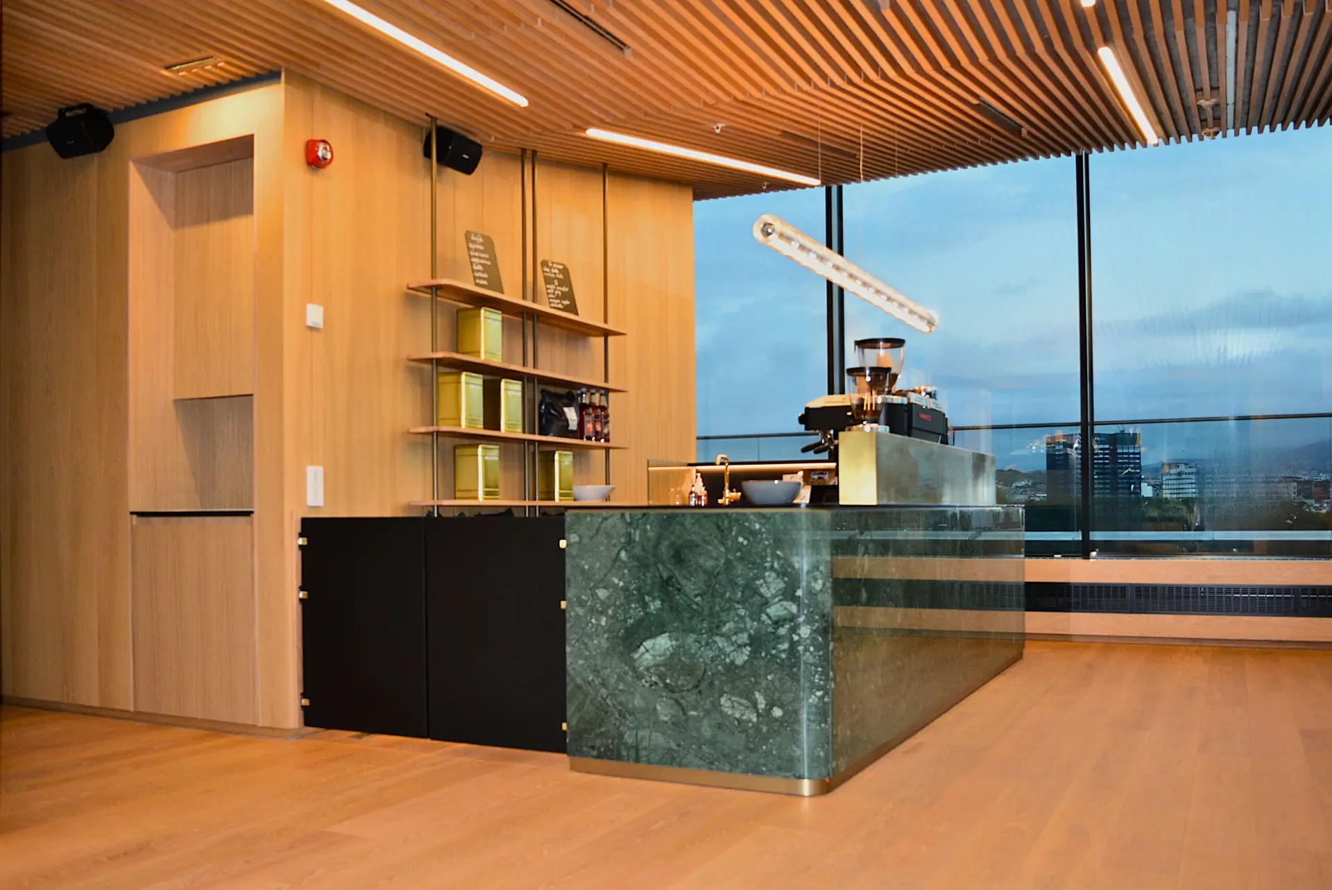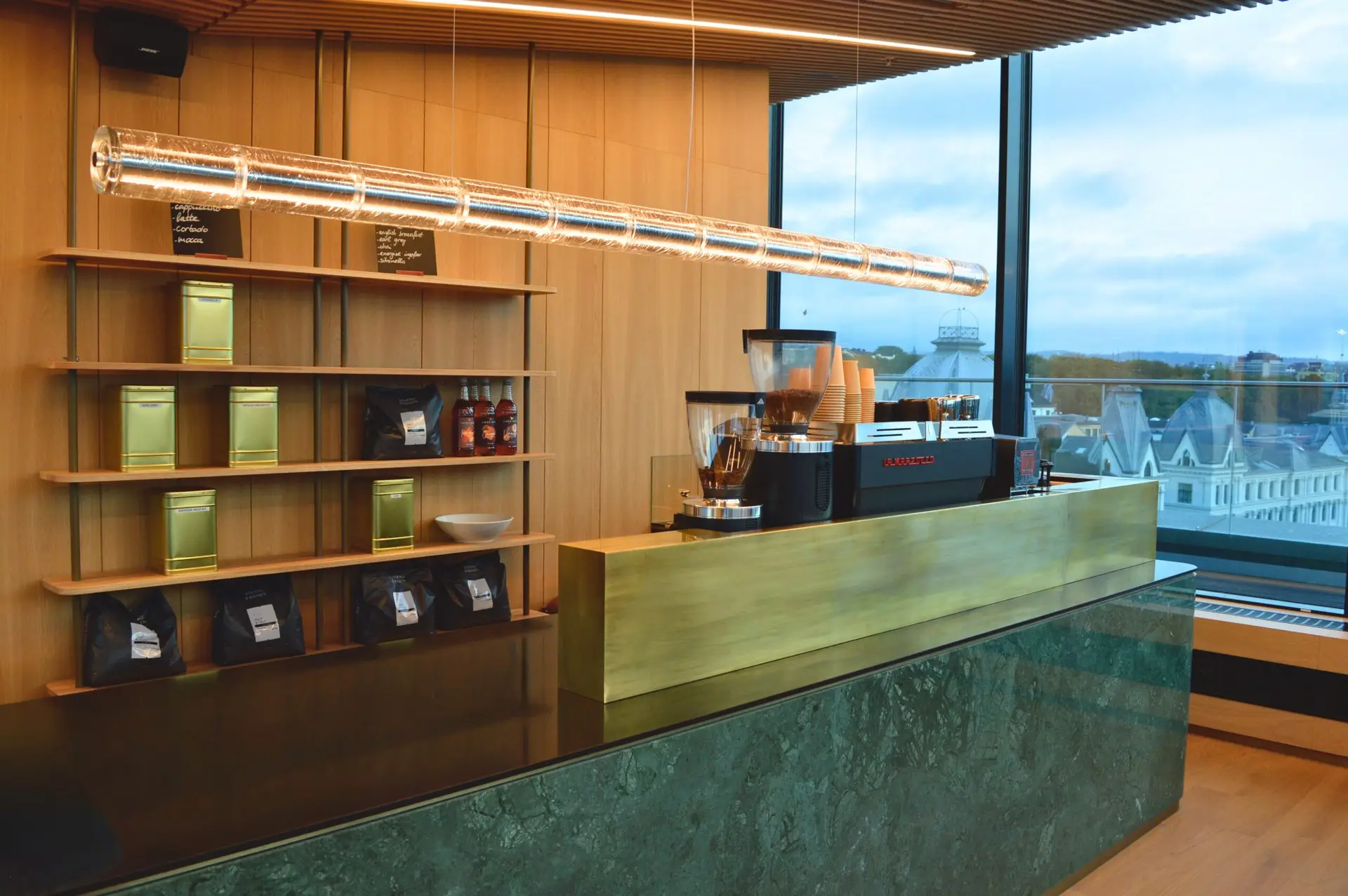 • Kaffebar, Plan 11: Etablering av en eksklusiv kaffebar med tilhørende serveringsområde. Her leverte vi spesialtilpassede løsninger og innredning, med materialvalg som underbygger et moderne og luksuriøst uttrykk.