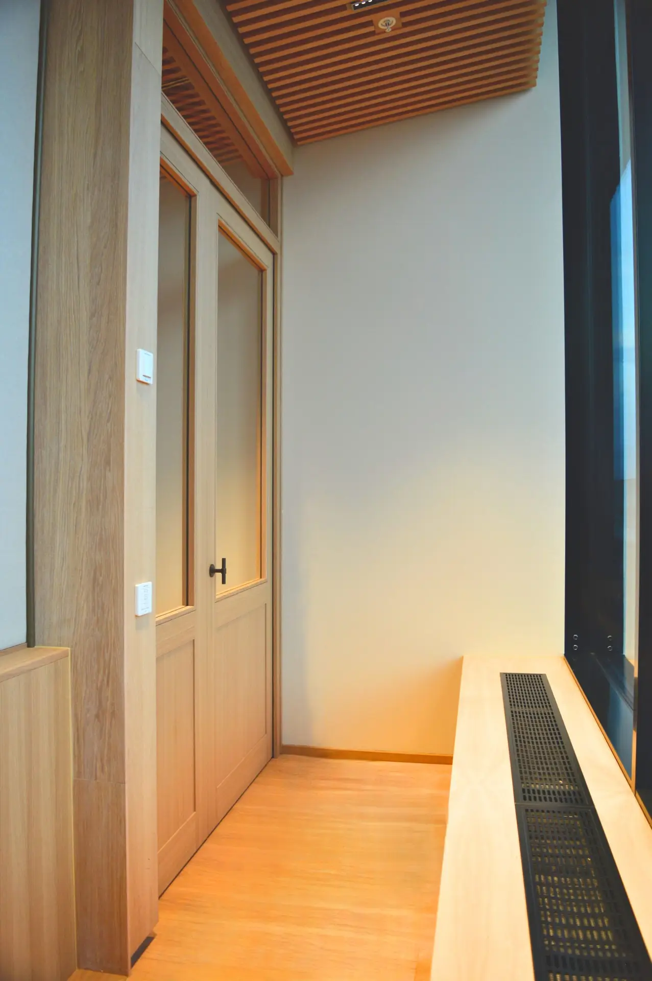 • Entrè, Plan 1: Skreddersydd og eksklusiv himling som estetisk løfter opplevelsen av inngangspartiet.