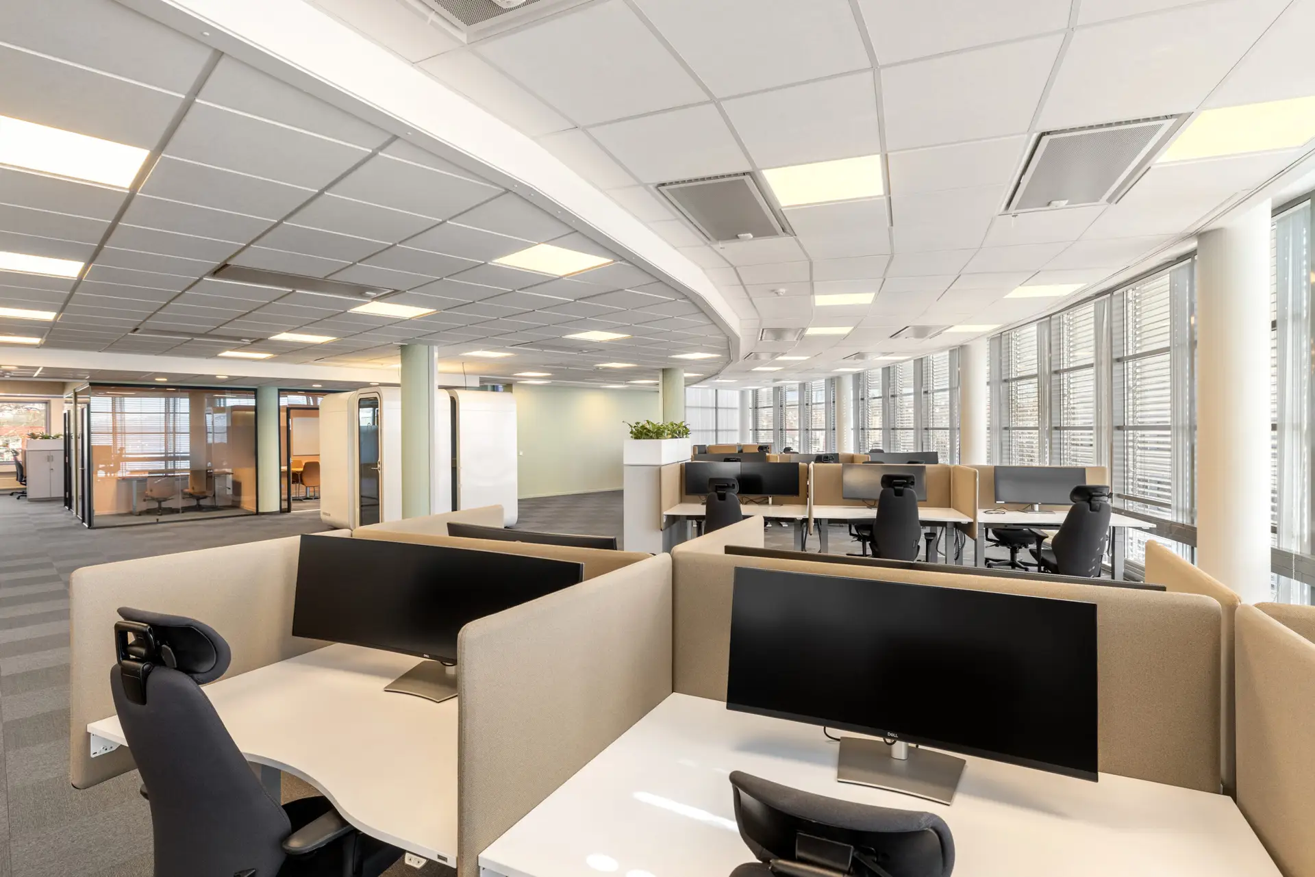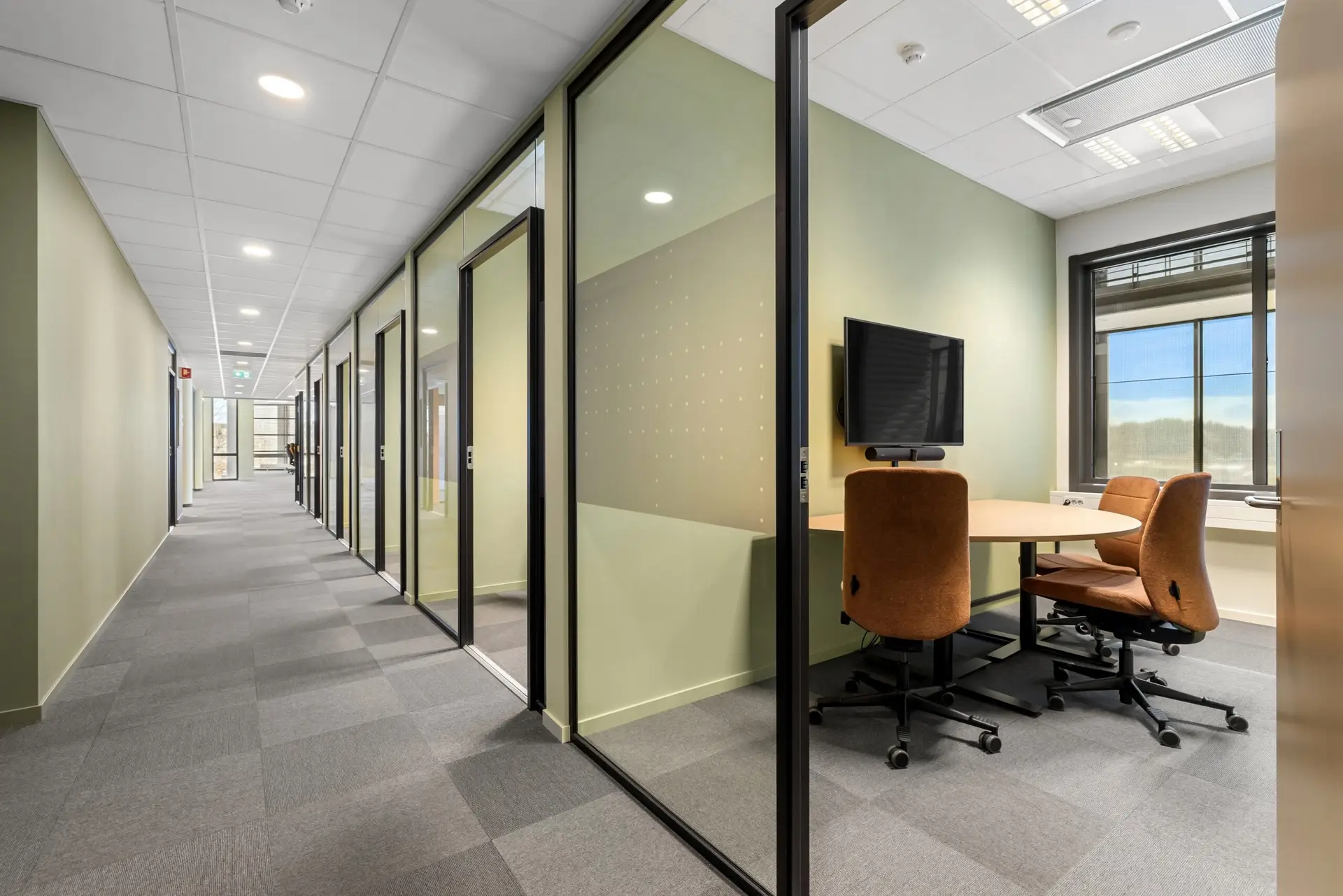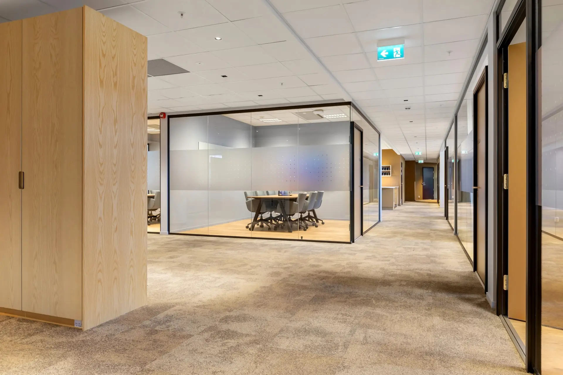 - Nye glassvegger og dører for åpne, fleksible og lyse arbeidsarealer.