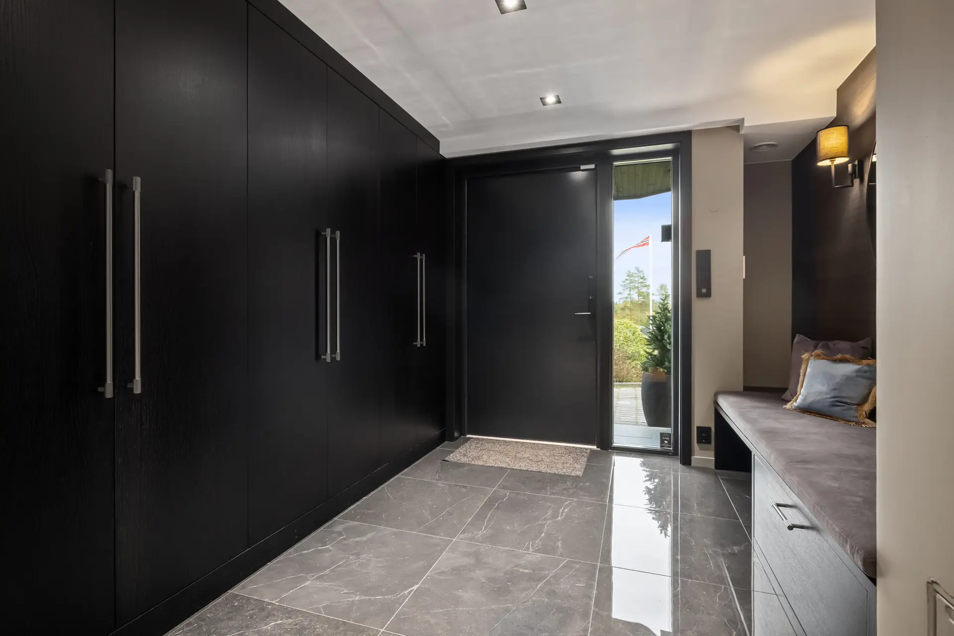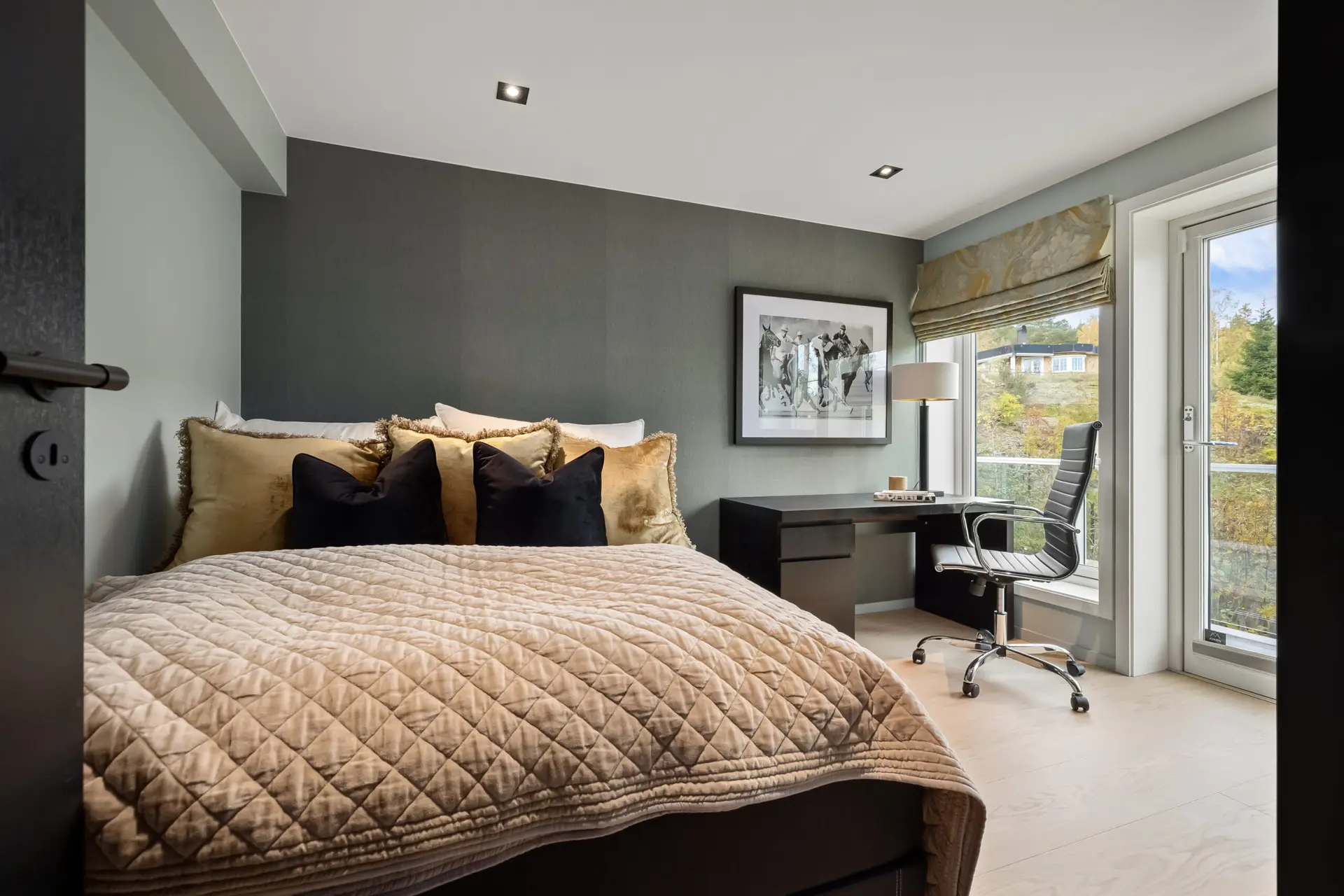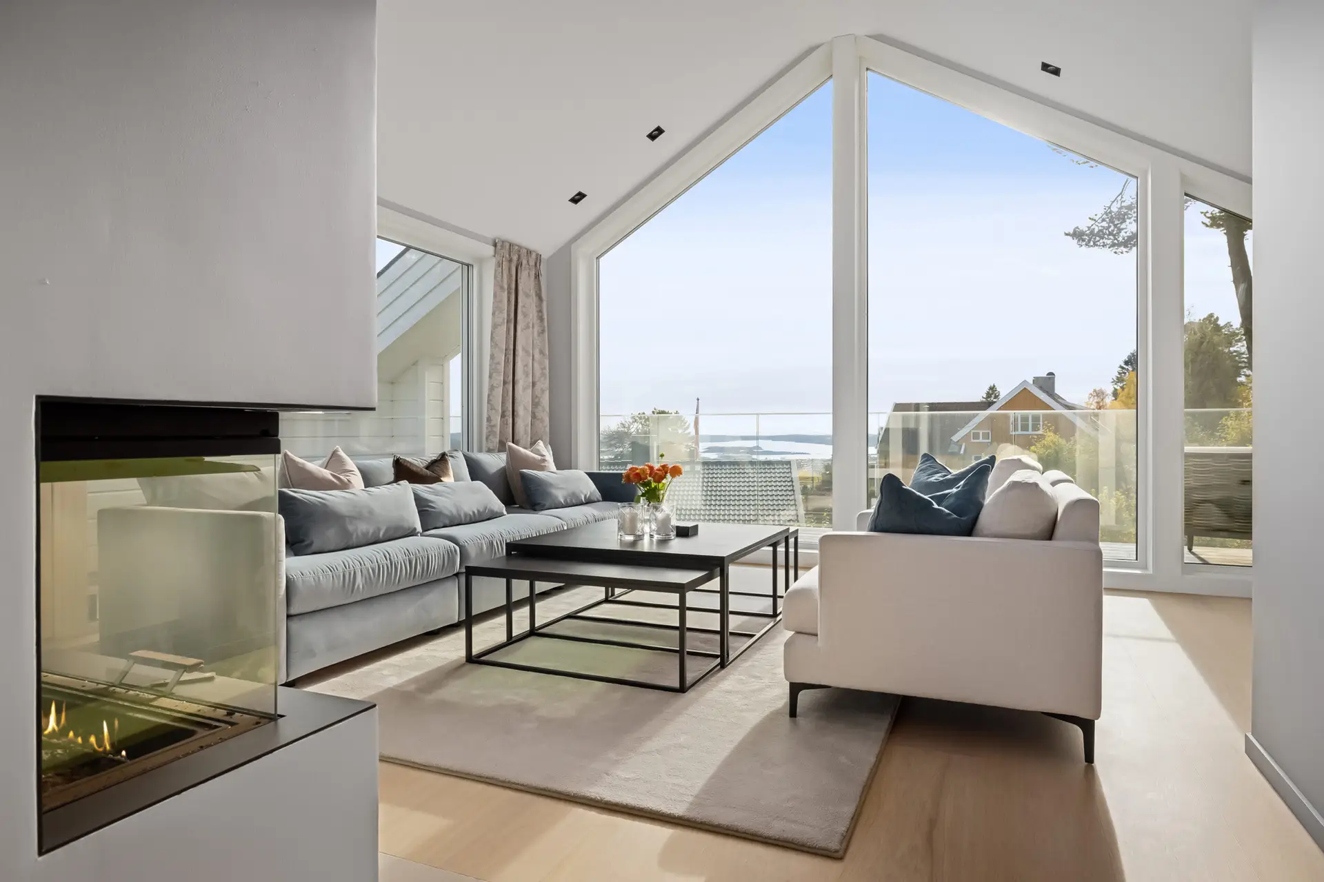 Eneboligen har fått et betydelig kvalitetsløft, med særlig fokus på å utnytte utsikten og skape et moderne uttrykk. Skreddersydde løsninger er gjennomført for å gi boligen et helhetlig, stilrent og elegant preg.