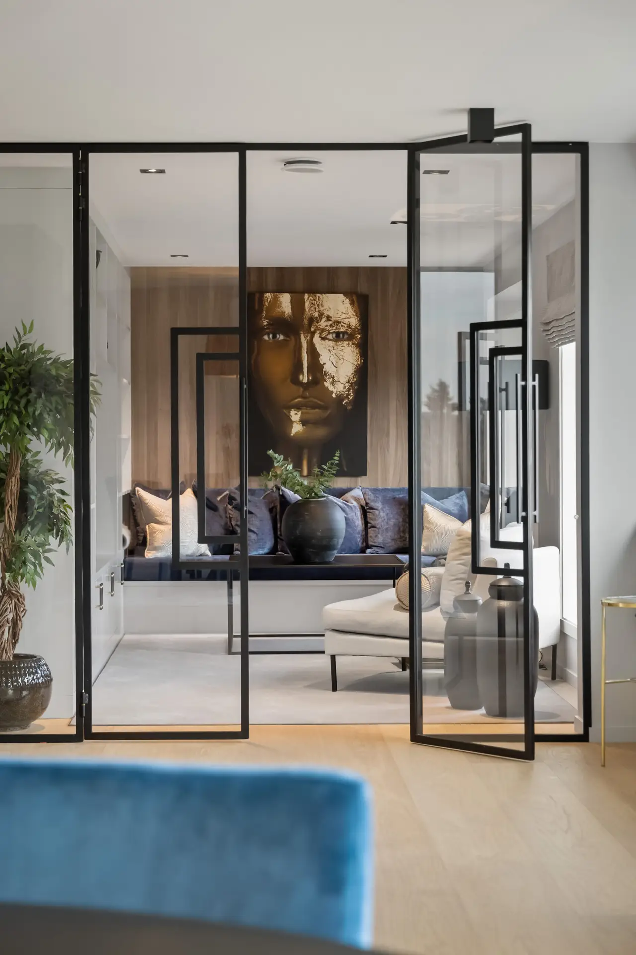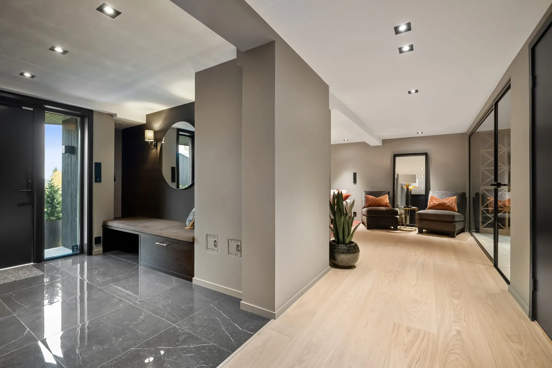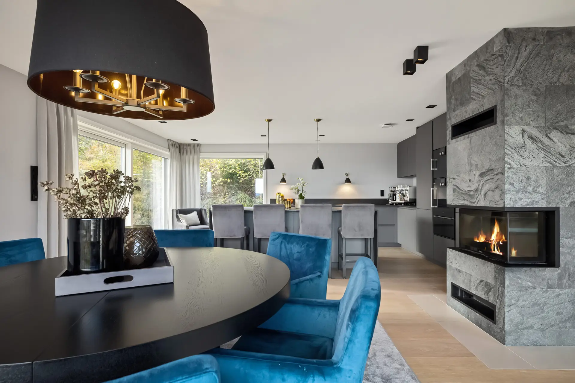 Eneboligen har fått et betydelig kvalitetsløft, med særlig fokus på å utnytte utsikten og skape et moderne uttrykk. Skreddersydde løsninger er gjennomført for å gi boligen et helhetlig, stilrent og elegant preg.
